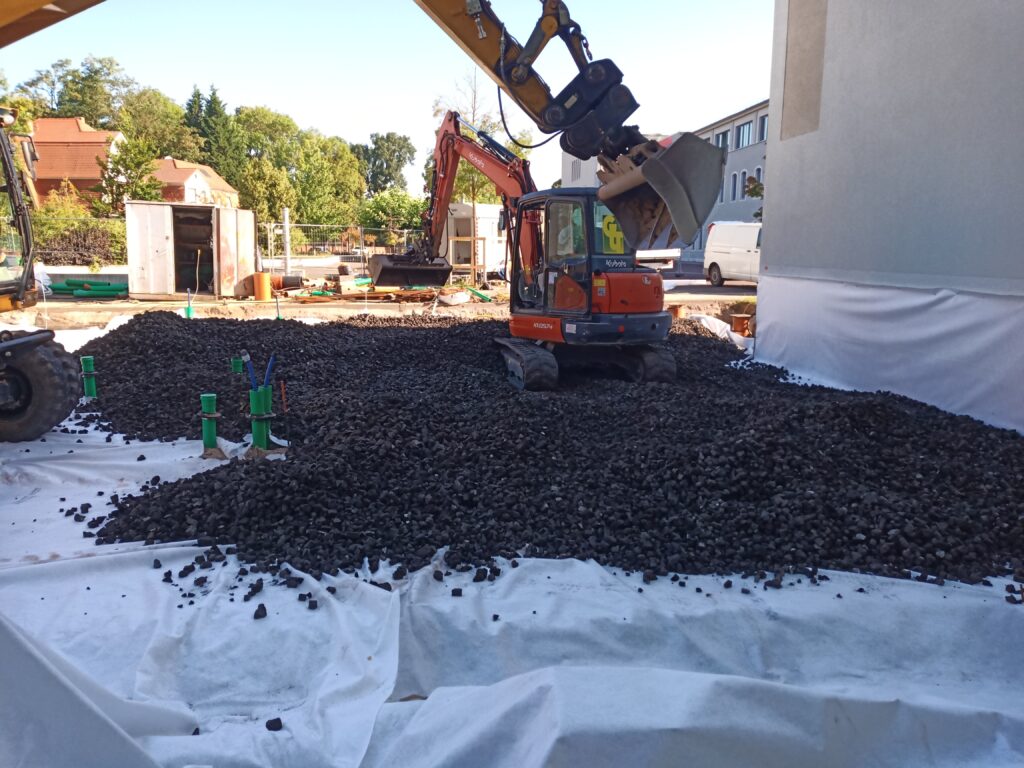 Eine innovative und nachhaltige Kindertagestätte steht nun auf einem SGS Gründungspolster – eine besonders nachhaltige Gründung mit Ressourcenspeicherbaustoffen.